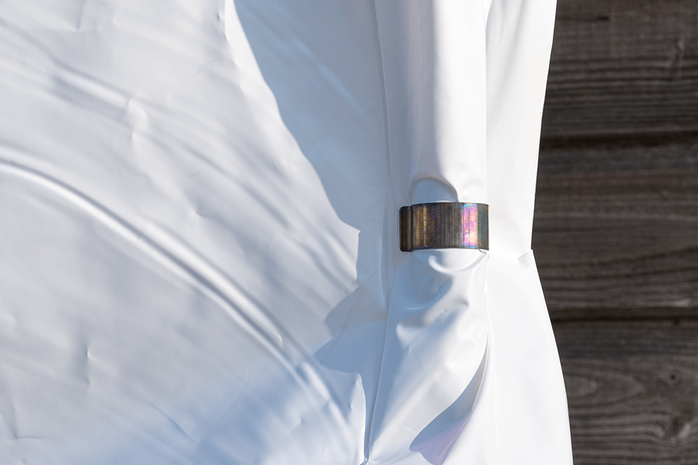 This metal pipe clamp is used to hold shrink wrap firmly in place prior to heat shrinking, preventing displacement and ensuring smooth shrinkage.