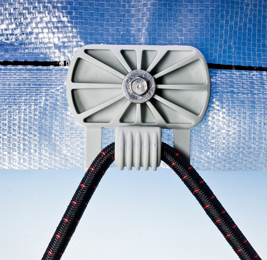 Dzięki odpowiedniej konstrukcji klips może skutecznie zastępować tradycyjne oczko plandekowe. Specjalnie zaprojektowany profil wewnętrzny po skręceniu zwiększa przyczepność materiału, zapobiegając jego przesuwaniu i uszkodzeniom.