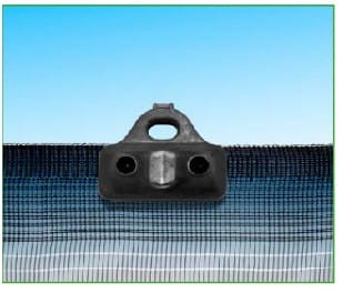 Klips 2-punktowy przeznaczony do trwałego i pewnego mocowania siatek cieniujących. Konstrukcja klipsa umożliwia równomierne rozłożenie siły naciągu, co zapobiega uszkodzeniu siatki nawet przy większym naprężeniu.